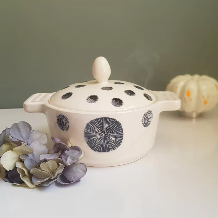 Handmade Ceramic Casserole – FOYA Ceramics Classic form with underglaze painting – perfect for oven cooking and elegant serving. Unique design with heatresistant colors Dishwasher and microwave safe Not suitable for direct flame (stovetop use) Dimensions: Inner diameter: 18 cm | Height with lid: 13 cm Usable capacity: approx. 1.6 liters کاسرول دستساز فویا سرامیک ترکیب نقاشی زیرلعاب با فرمی کلاسیک؛ مناسب گرمکردن و پخت غذا در فر، و سرو با سلیقهای خاص. طراحی منحصربهفرد با رنگهای مقاوم در برابر حرارت قابل استفاده در ماشین ظرفشویی و ماکروویو مناسب استفاده روی شعله مستقیم نیست ابعاد: قطر داخلی: ۱۸ سانتیمتر | ارتفاع با درب: ۱۳ سانتیمتر گنجایش مفید: حدود